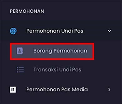 Step 5 : Once inside your MySPR account, look for the Permohonan Undi Pos (Postal Vote Application) section on the side menu on the left. Click on the Borang Permohonan (Application Form) option.