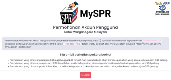 Email : Tuan/Puan, SPR: No. TAC ialah XXXXXX. Permohonan Akaun Pengguna