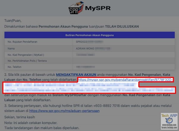 Step 10 : You will receive an email with the title Pengaktifan Permohonan Akaun Pengguna (Activation of User Account Application) letting you know that your MySPR account has been approved.