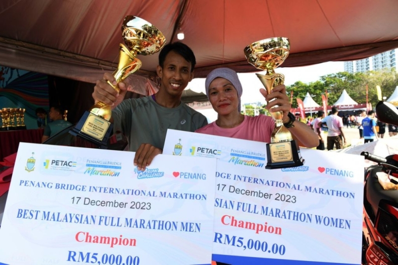 In a remarkable display of athleticism and teamwork, a married couple serving in the army and police clinched the top spots in the Penang Bridge International Marathon (PBIM) for the second time together, dominating the Malaysian men’s and women’s categories in this morning’s run.