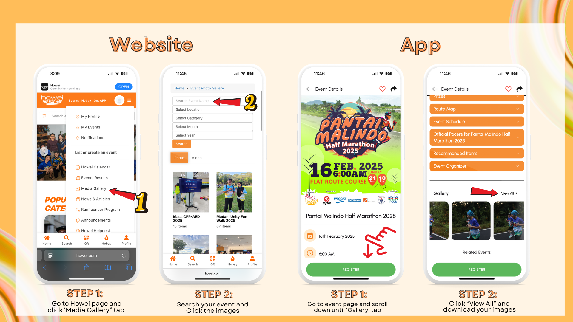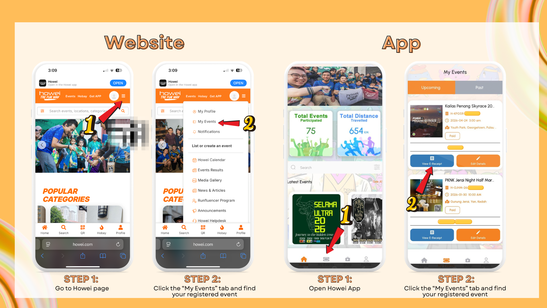 1. Go to the Howei website or app and search for your registered event