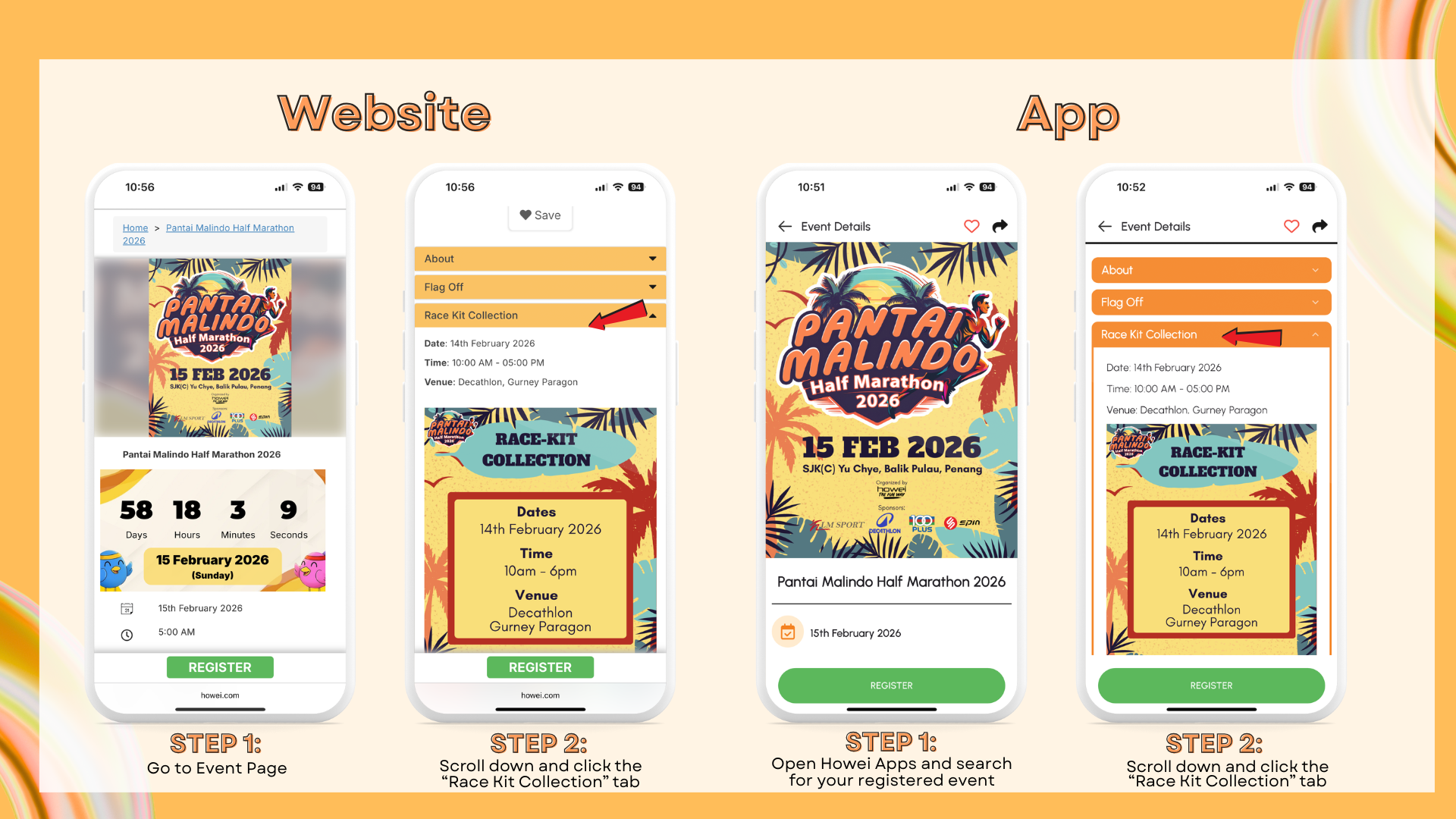 Race Kit Collection details are available on the event page under the ‘Race Kit Collection’ tab. If the details are not shown yet, it means they haven’t been announced. The information will be updated once available.