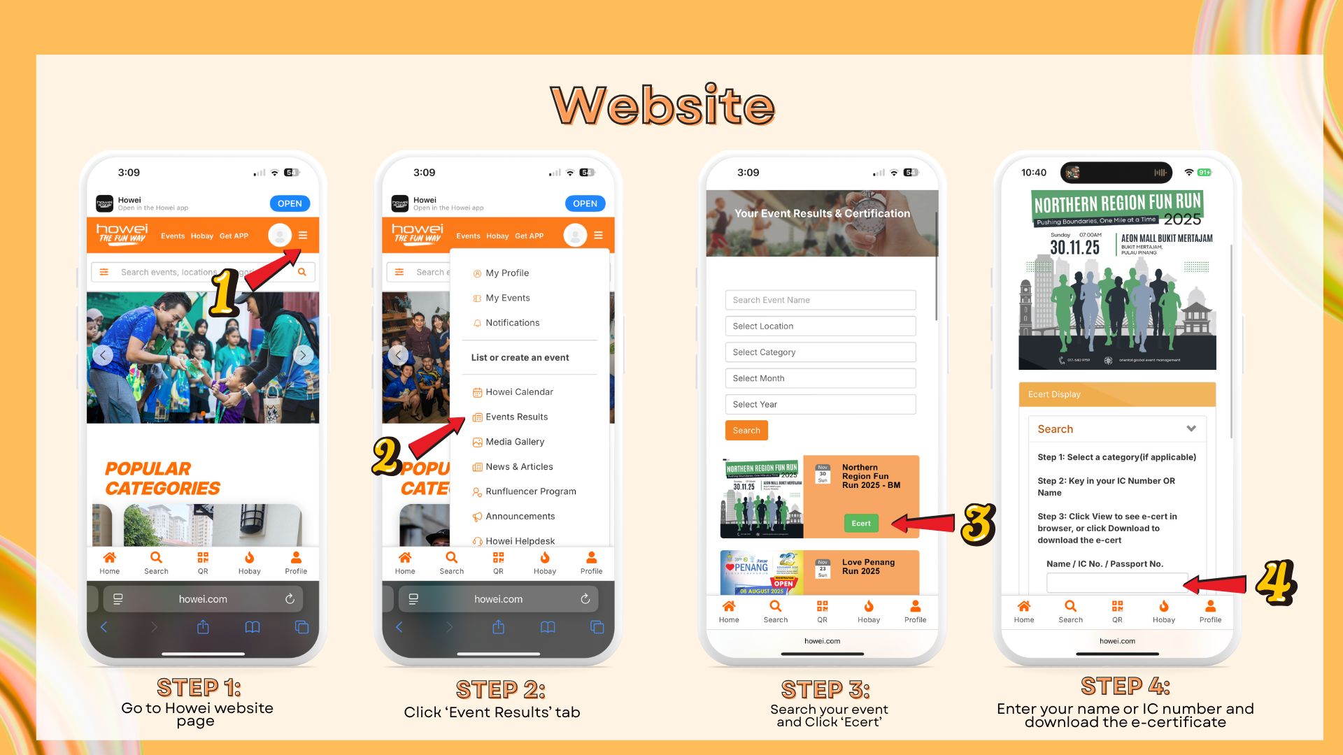 1. Go to the Howei website and click the “Event Result” tab at the top
